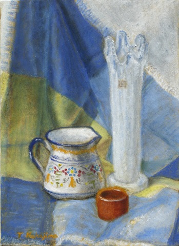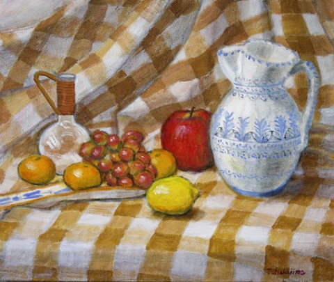 ギャラリー2 2008年ー2010年 (画像をクリックまたはタップ) ある日の風景 F15 青いコーヒーカップと果物 F6 カーテンのある静物 F6 午後のひととき F15 桃と葡萄のある静物 F10 スペイン陶器とガラスの花びん F4 ギターと陶人形のある静物 F10 卓上のクリスマスローズ F15 静寂な時間 F8 草原の食卓 F6 果物と水差し F8 南国への憧憬 F6 こけしのある静物 F6 りんどう F6 びんの風景 F8